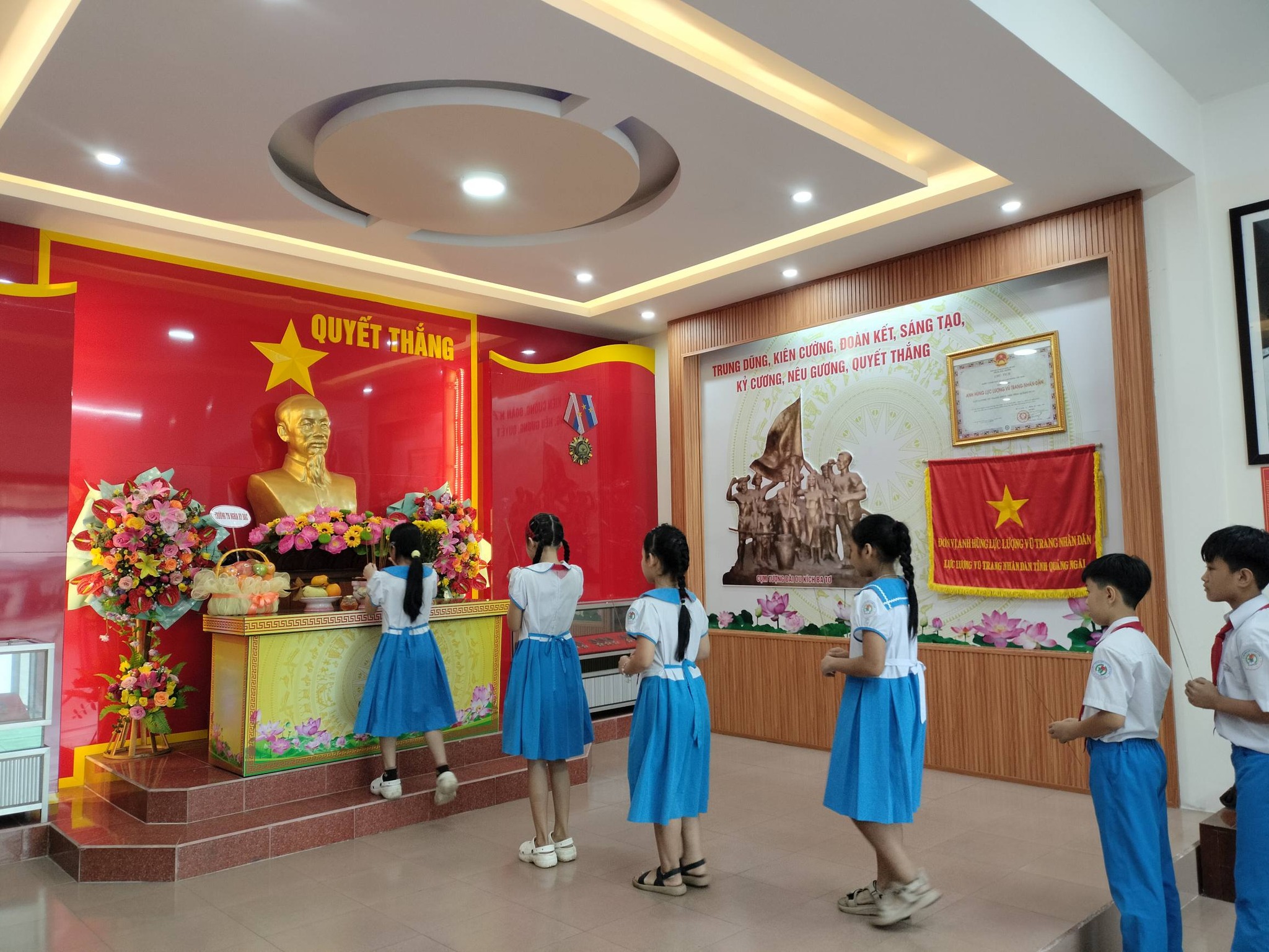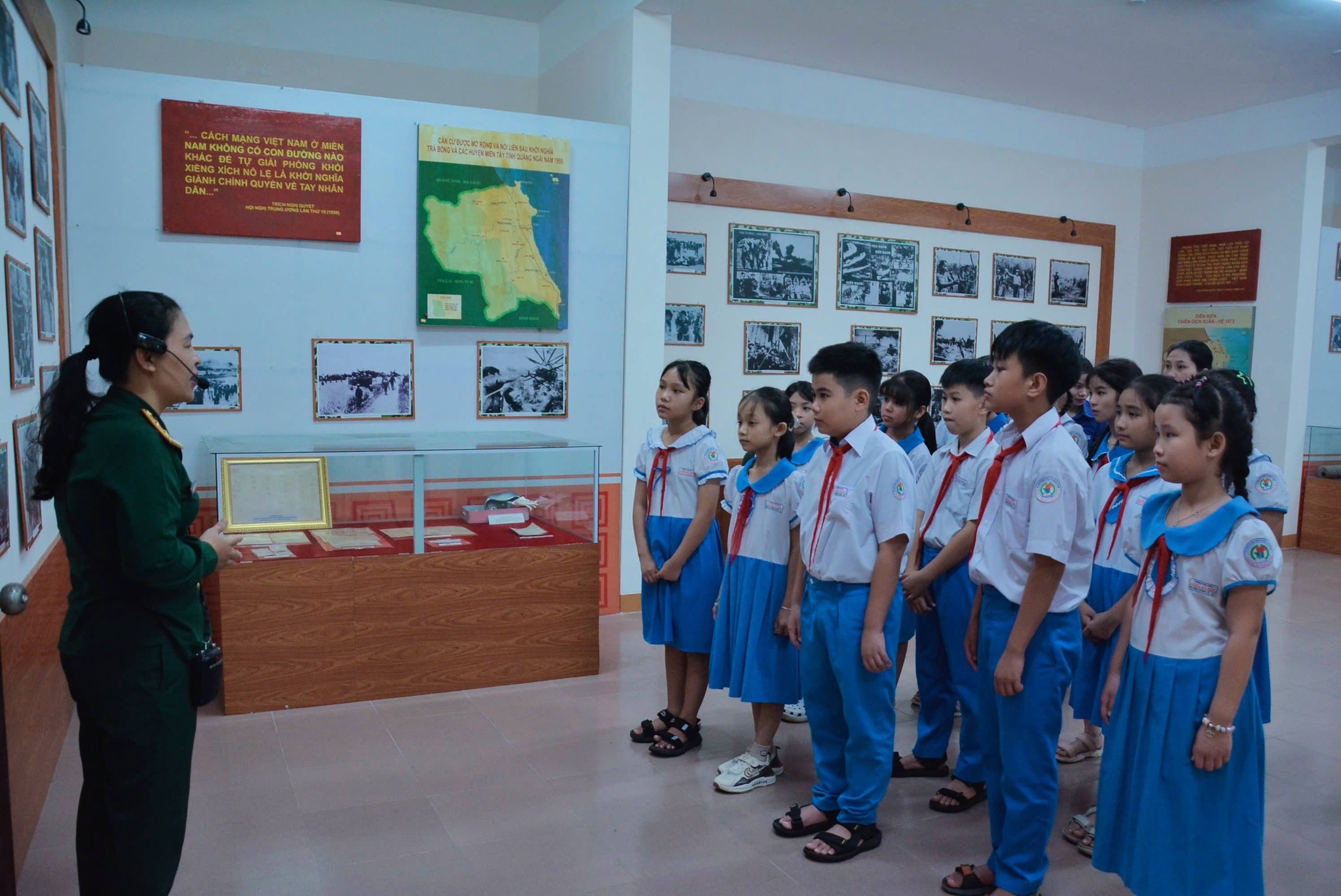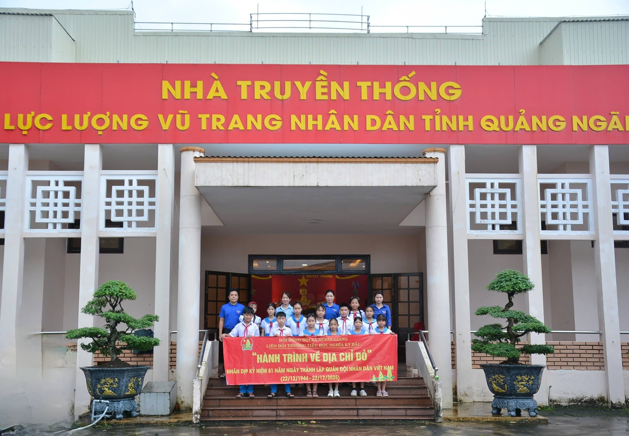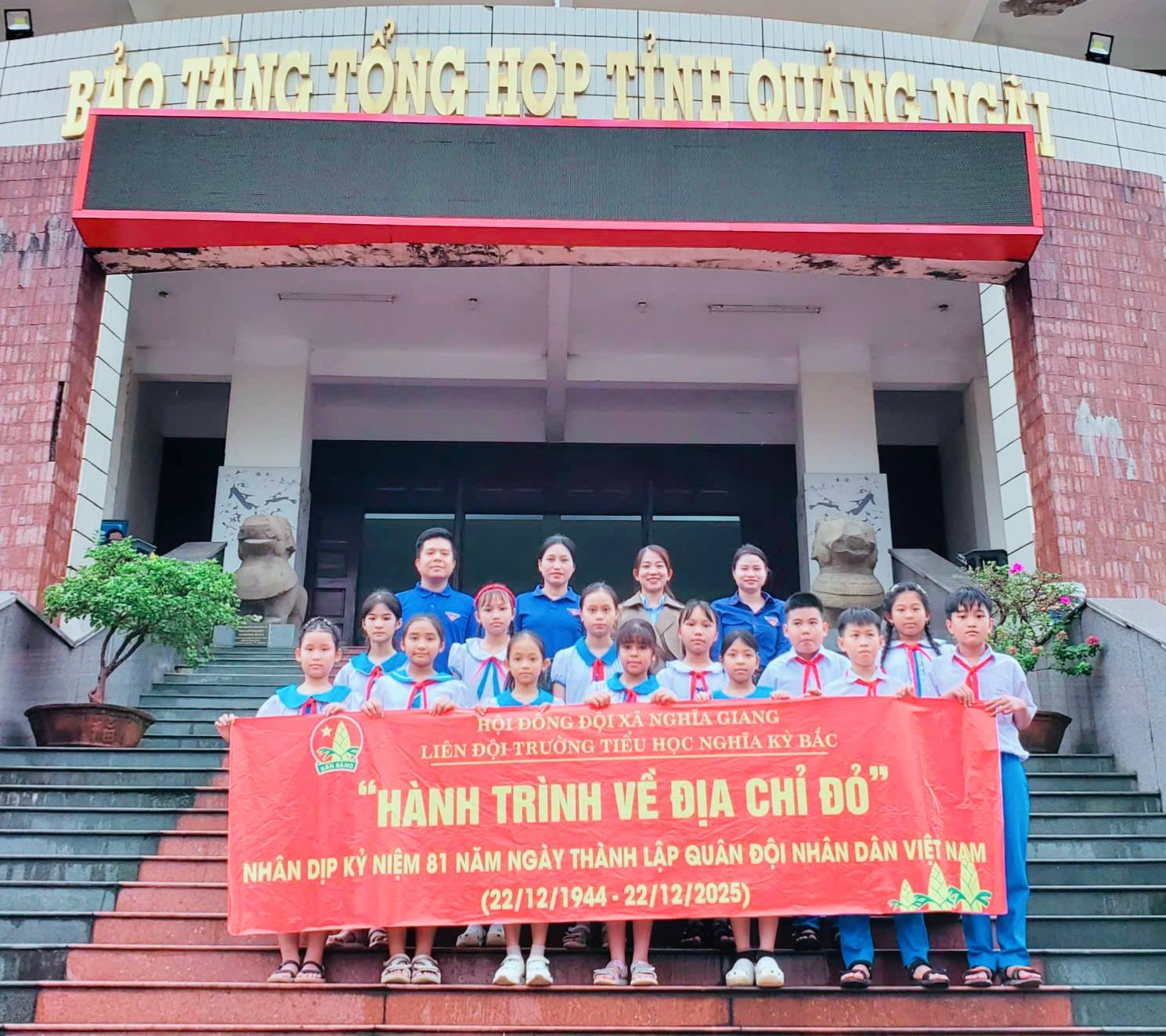 Thực hiện kế hoạch giáo dục nhà trường, Chương trình công tác Đội năm học. Được sự cho phép của BGH nhà trường, Chiều ngày 17/12, Liên đội TH Nghĩa Kỳ Bắc đã tổ chức chương trình tham quan, trải nghiệm “Tìm về địa chỉ đỏ” cho các em học sinh trong BCH Liên đội cùng các thầy cô giáo tại Nhà truyền thống lực lượng vũ trang nhân dân Tỉnh và Bảo tàng tỉnh Quảng Ngãi – Nhân kỷ niệm 81 năm Ngày thành lập Quân đội nhân dân Việt Nam (22/12/1944 – 22/12/2025) và 36 năm Ngày Hội Quốc phòng toàn dân (22/12/1989 – 22/12/2025).